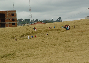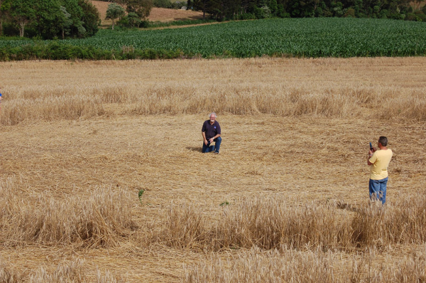A. J. Gevaerd (centre) measuring the secondo circle in Ipuaçu (wheat), November 9th, 2008