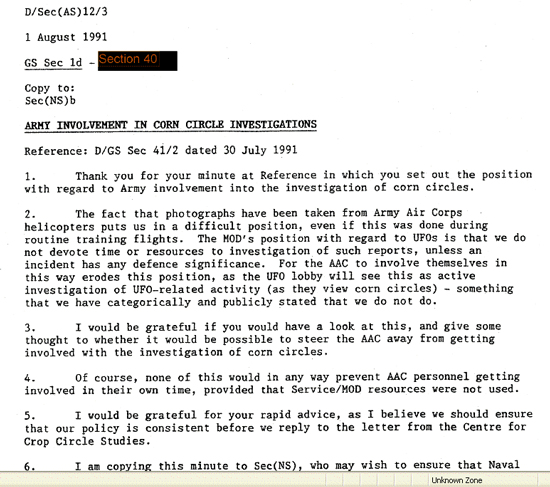 over the phenomenon and interest in the work of the early crop circle researchers, the semi-official Government