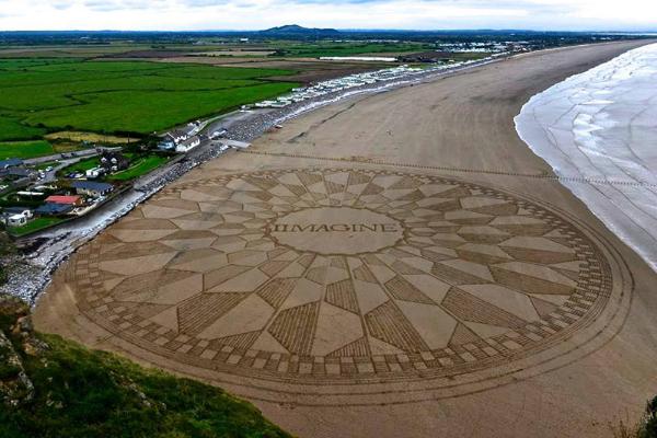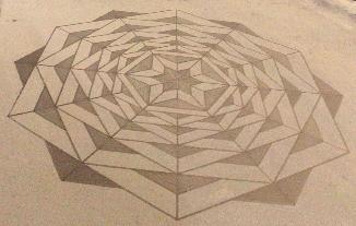 England Brean Beach, Somerset. Constructed by Simon Beck (with help) who is famous for the snow circles he has made in the French Alps. - media. |