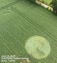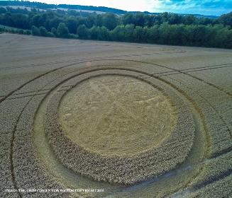 England Trodds Copse, Tichborne, Hampshire. Discovered by Jan Delgado, daughter of Pat Delgado who was the original crop circle researcher. These are the same fields near where Pat, Terrence Meaden, Busty Taylor and Colin Andrews began the research in the early 1980s. It was also the fields in this area that Colin coined the term 'Crop Circle' and Pat and he wrote the first crop circle book, 'Circular Evidence'. - Full circle. The photographs here are copyright: Crop Circle Connector. |