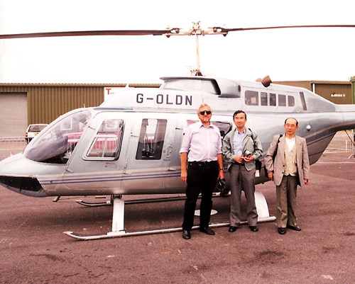 | Colin with researchers from Japan after landing from a reconnaissance flight over crop circle fields in southern England - Thruxton, Hampshire. |