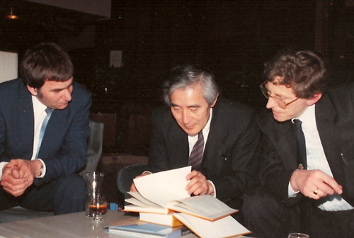 | Left is Busty Taylor and right Colin Andrews with Prof Hiroshi Kikuchi, mathematician and atmospheric physicist from Nihon University. Here seen in London. |
