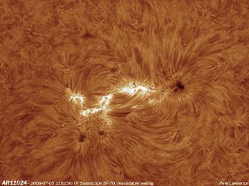 on July 7, 2009. The Alert is for Sunspot 1024 which suddenly appeared on July 3 and