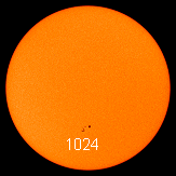 The magnetic polarity of sunspot 1024 identifies it as a member of new Solar Cycle 24.