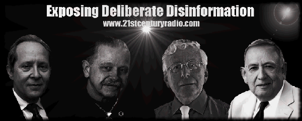 | www.21stcenturyradio.com - The show. Exposing Deliberate Disinformation to control what you think about UFOs and the paranormal. From left to right - Peter Robbins, (Host Dr. Bob Hieronimus), Colin Andrews & Robert Salas. |
