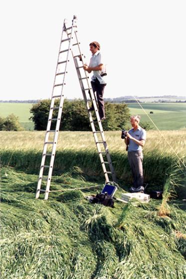 Busty Taylor and Dr, Terence Meaden recording ground details from apparatus I rigged up for this work.