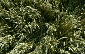 unusual damage (tracks) in the standing crop adjacent to one tramline. The