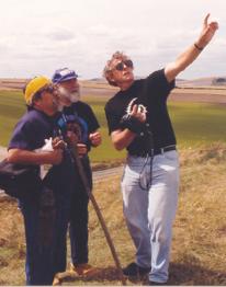Yeva with Colin (on roof), visiting the site of crop circles in the Australian outback.